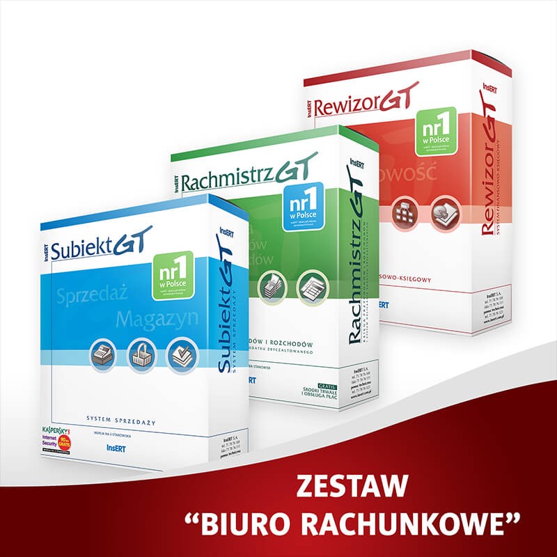 Wersja plus dodatkowo zawiera Biuro GT (system wspomagania pracy biura rachunkowego);